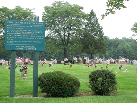 In 1976, Woodville Township, in cooperation with the Sandusky County Veterans Office in Fremont and the Woodville American Legion Post #455, set aside a section in the western portion of Westwood Cemetery for veterans and their spouses. The Veterans Section is dedicated to the veterans who have served in the U.S. Army, Navy, Air Force, Marines, and Coast Guard. The Veterans Administration pays for the veteran’s grave and governmental marker, and the veteran’s spouse is able to purchase the grave beside them at a reduced rate. For more information about veteran’s benefits, contact John Kelley at the Veterans Office in Fremont 419-334-4421.